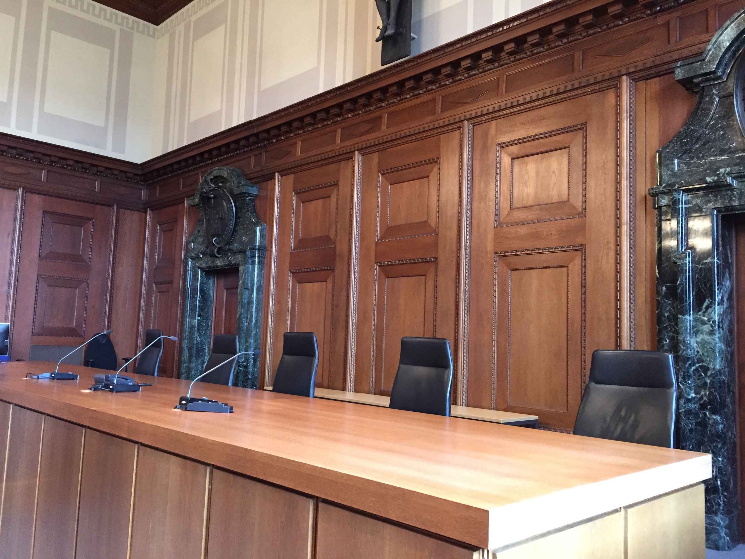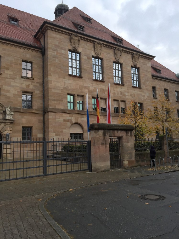 On Saturday, we visited the town of Nuremberg, Germany (aka Nurnberg). Nuremberg is along the Rhine-Main-Danube Canal and is the second largest city in the German state of Bavaria, with a half million in population. Our guests could choose one of two tours: Medieval Nuremberg or World War II. I joined Kati on the World War II tour, as I had always heard about Nuremberg and the Nuremberg trials but didn’t know much about the history. Hitler declared Nuremberg the “City of Reichsparteitage” (Reich Party Congresses) in March 1933. Six Nazi party rallies occurred in Nuremberg and each took place for a week in September from 1933-1938 and were mandatory for anyone affiliated with the Nazi party. The official Nazi party rally grounds covered about 11 square kilometers, including the Zeppelinfeld, Kongresshalle and the Grobe Strabe. The grounds were mostly planned by Hitler’s architect Albert Speer. The first stop on our tour was the courtroom where the Nuremberg trials took place, Courtroom 600.